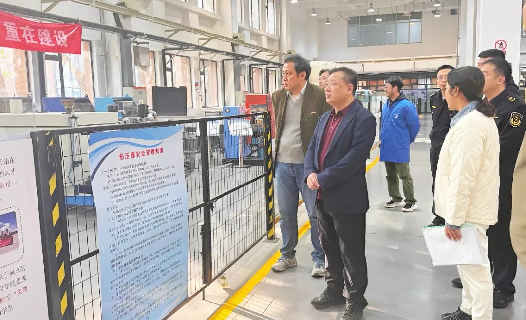 于俊东一行先后到学校行政会议中心、复合材料实验室、学生餐厅等重点点位,对电梯、压力容器等特种设备的运行现状及食品安全保障机制进行全面细致了解,对学校的平安校园整体建设取得的成效给予充分肯定。